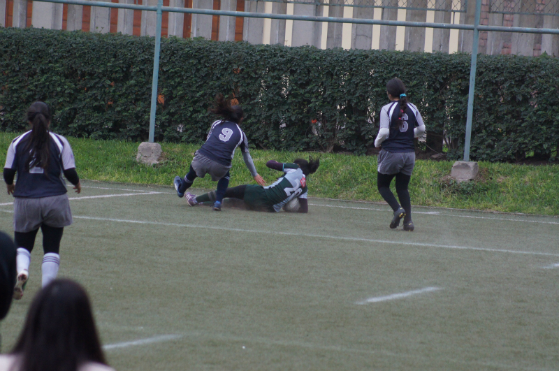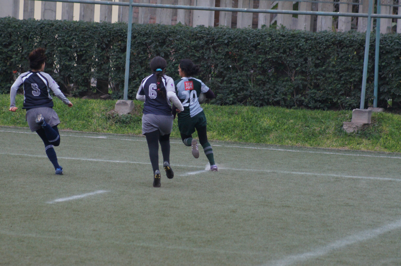 Jugada del partido de la División Femenina entre U. Católica y el Newton-UPC.  El momento decisivo se produce por un pase con el revés de la mano.